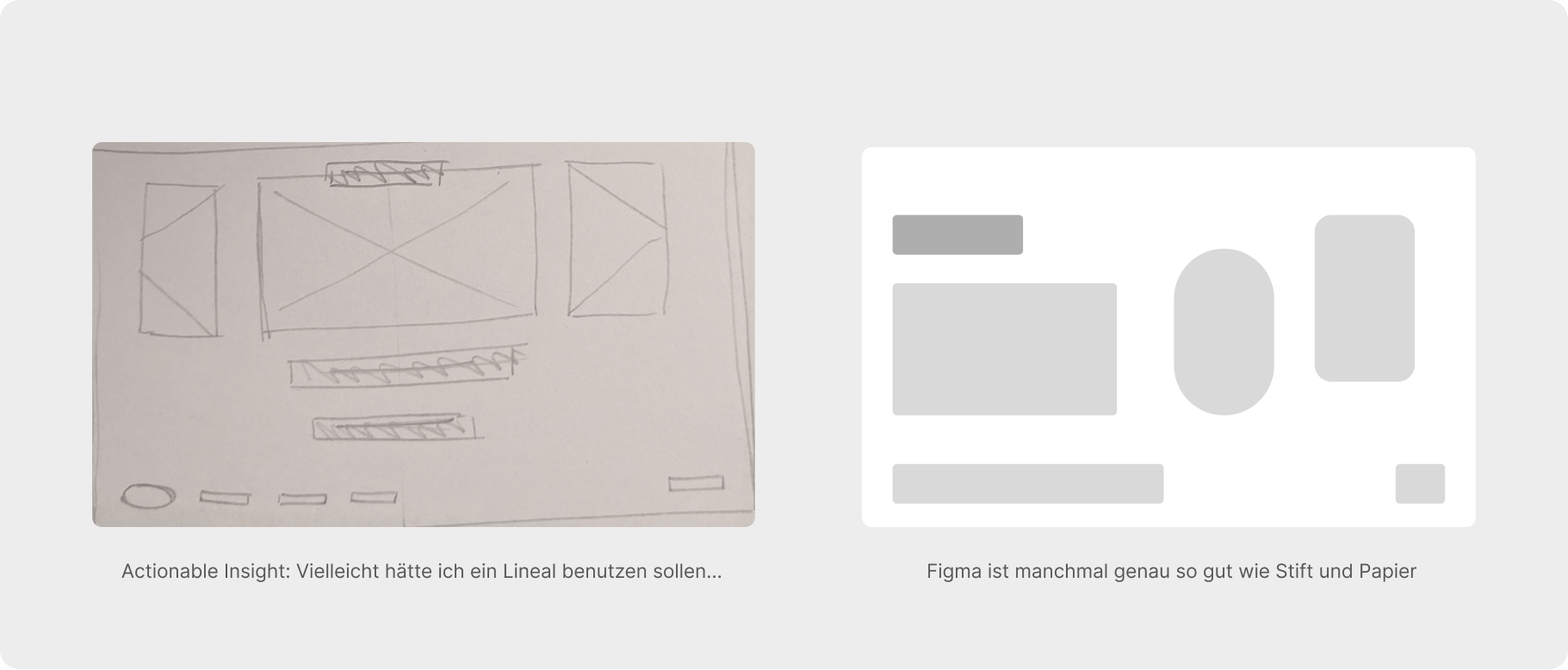 Bei den Wireframes begann ich mit einfachen Skizzen auf Papier und machte dann in Figma weiter: