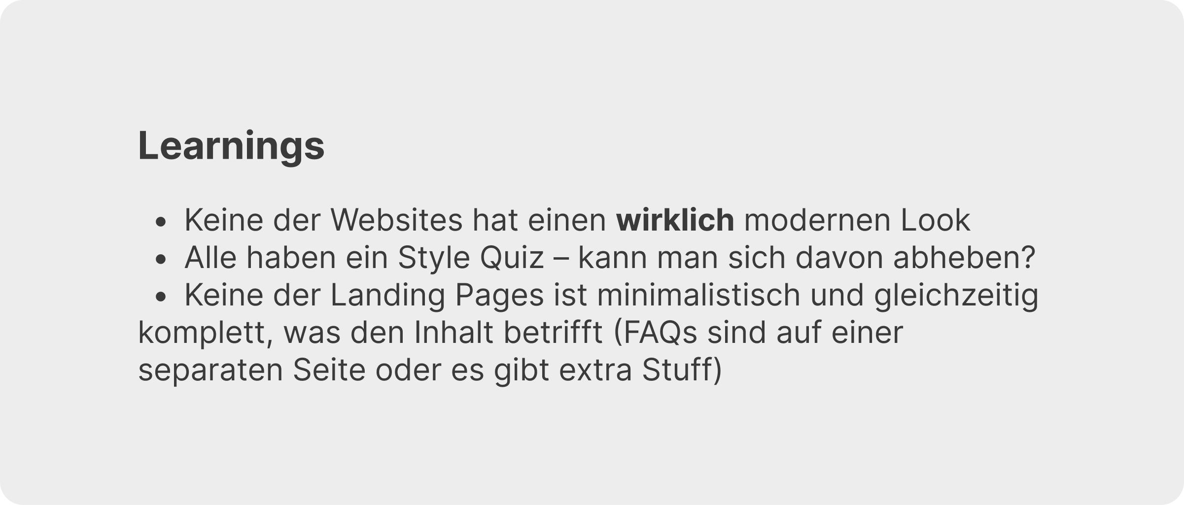 Ich entschied mich deshalb dafür, das Style Quiz auch für meine Landing Page beizubehalten. Es passt zu gut zum Service und bringt zu viele Vorteile mit sich, um nur aus Distinktionsgründen darauf zu verzichten.